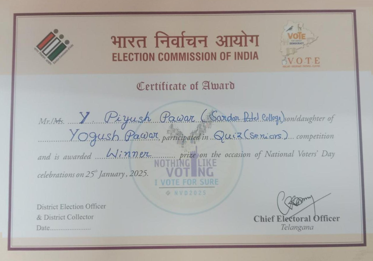 1st Year, and Y. Piyush Pawar, a student of BBA 4th Semester from Sardar Patel College, participated in a