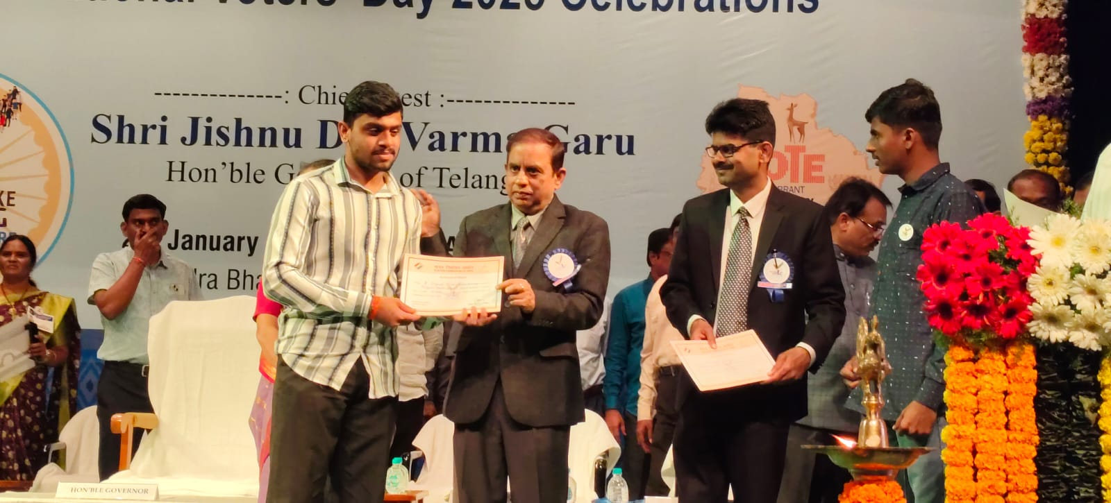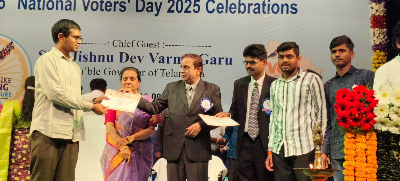 To celebrate National Voters' Day, they were awarded the Winner’s Prize at Ravindra Bharathi by Dr. C. Sudharshan Reddy